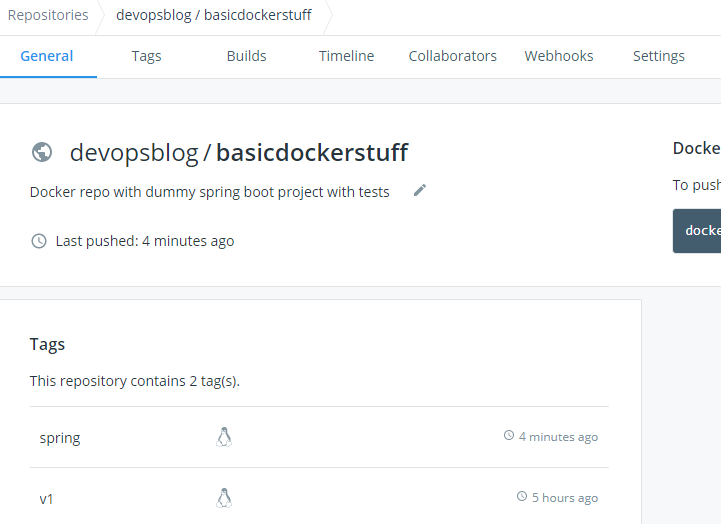 If we go to our dockerhub repository we can see that we have a new tag “spring”