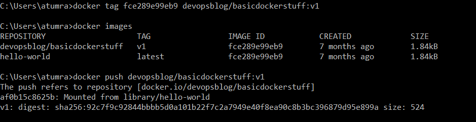 We will tag the hello-world image and push it to our docker hub repository