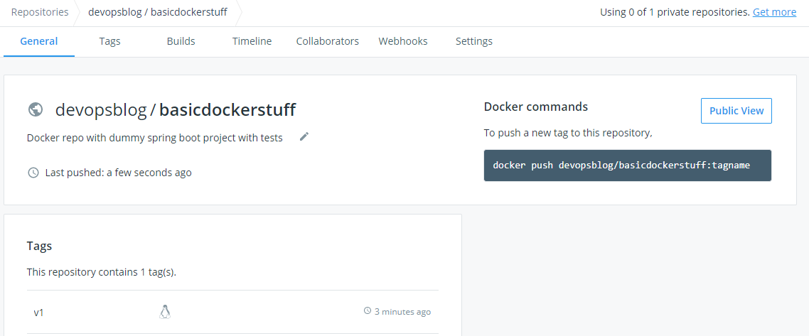 Once push is done we can go to our docker hub registry and verify that we have docker image