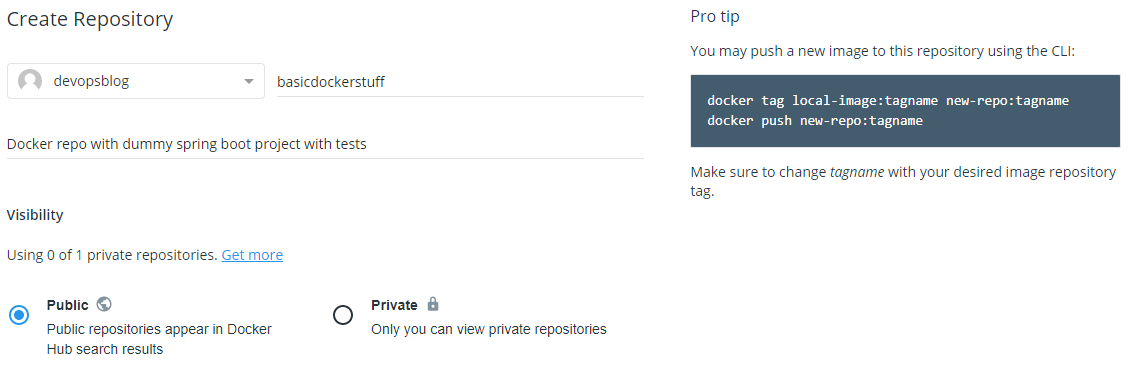 - Create dockerhub repository