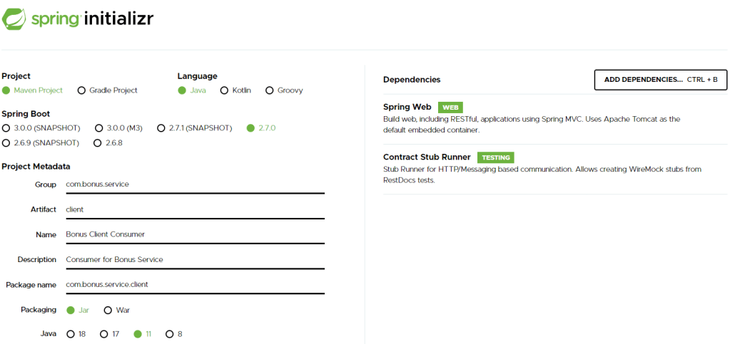 We will create our consumer service using https://start.spring.io/ and open the project into IDE
