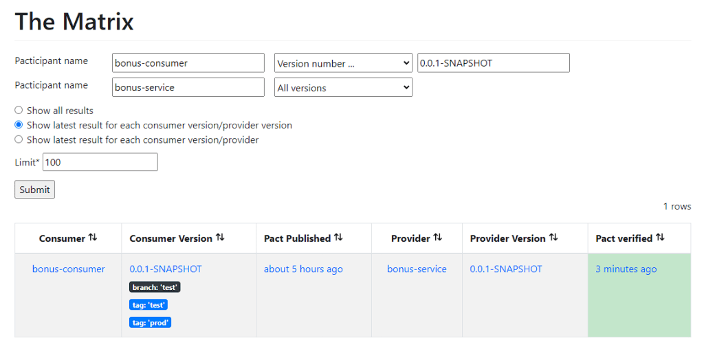 Verify the pact broker for results