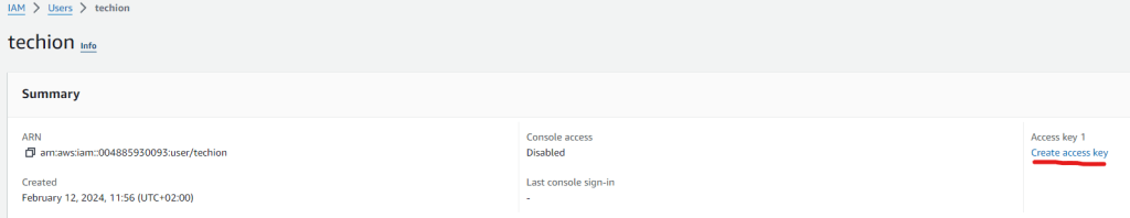 NOTE: For a new user you will have to create an access key if you don’t have one already.