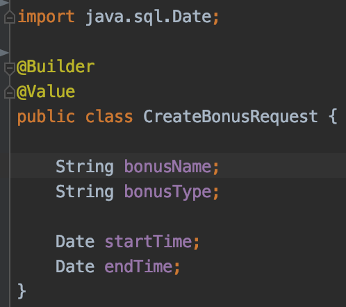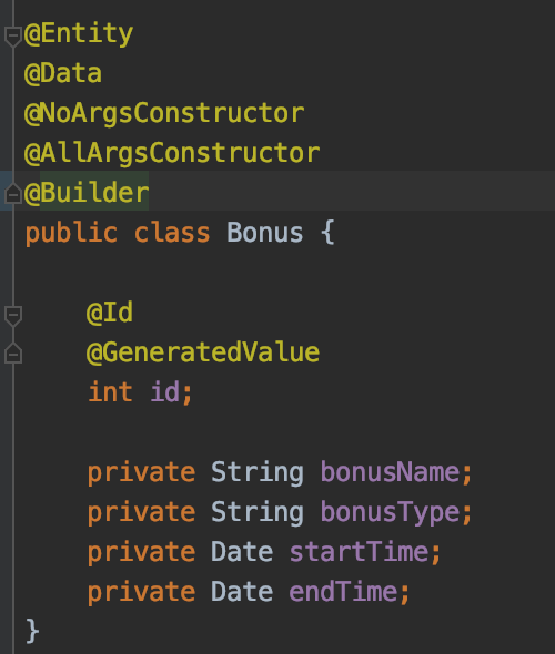 1.Define the class entity and the bonus request that we will use in order to create the bonus