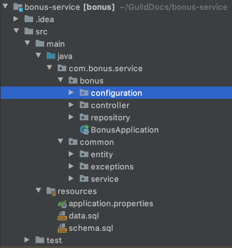 Create a schema.sql file into the resources folder and define the table structure